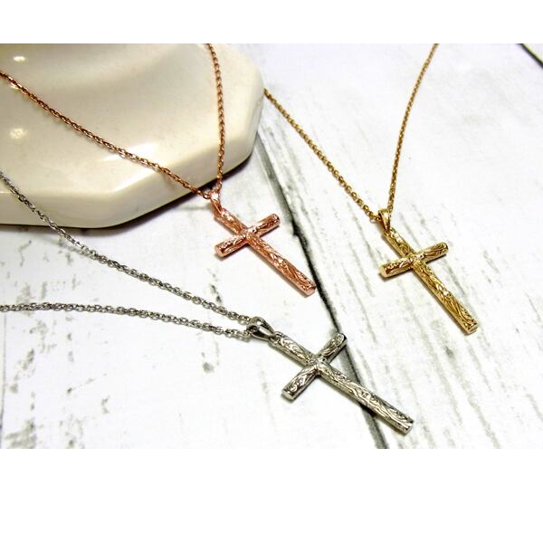 ハワイアンジュエリー ネックレス クロス ピンクゴールド イエローゴールド